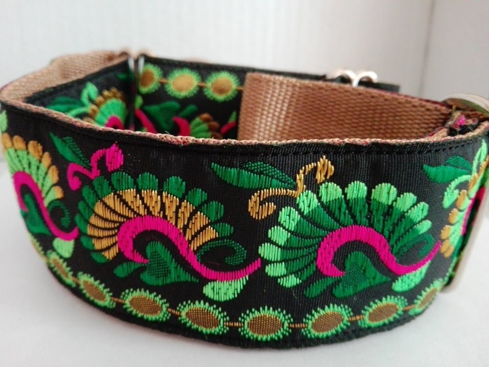 Collar Martingale con una cinta que simula la pluma del pavo real